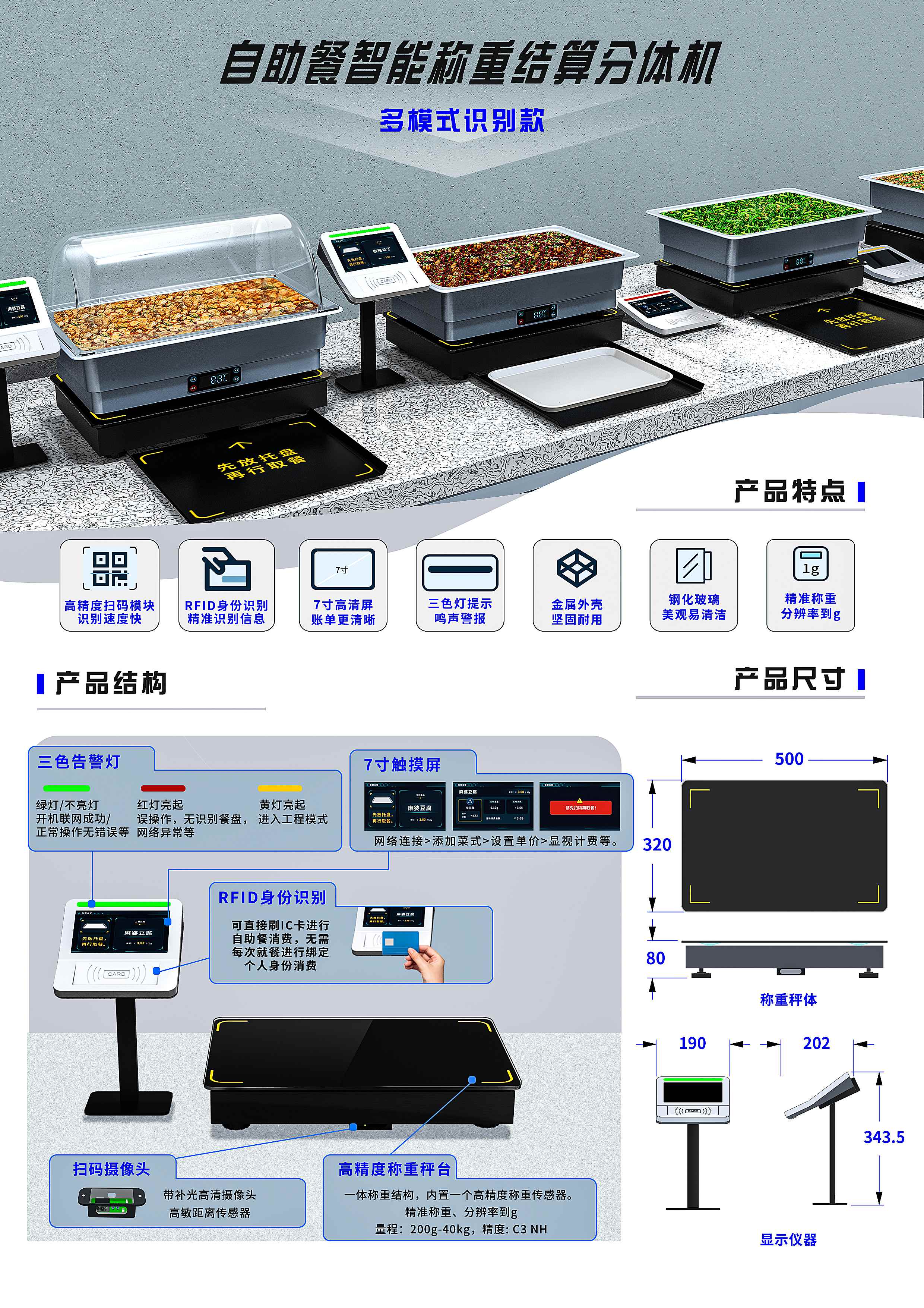 自助餐智能称重结算分体机(多模式识别款)华兰海自助餐智能称重结算分体机是一种集称重和结算功能于一体的智能设备。在一体机的...